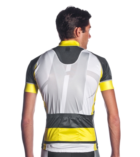 Hightlights : Performance fitting sublimated race jersey, utilizing stretch knit and mesh vent panels.