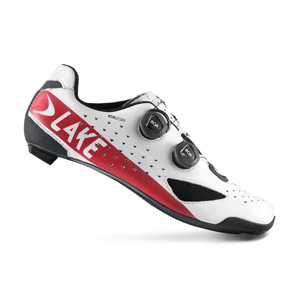 LAKE - CX238-WHT-RED CX 238 WIDE CARBON ROAD SHOE WHITE RED
